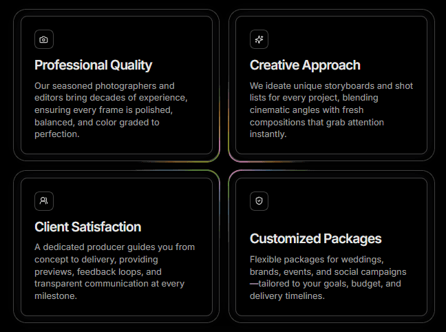 Modern UI/UX: A clean, elegant design that reflects the studio’s creative identity.